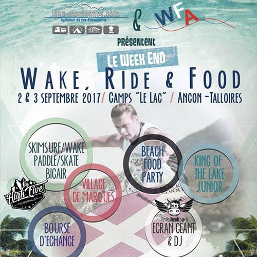 Organisé par WakeSurf France Association & Lake-Montagnes.com dans le cadre de l'European WakeSurf ChampionShip 2017 (étape Europe des World Series of Wakesurfing CWSA), le "Week end, Wake, Ride & Food" aura lieu les 1er, 2 & 3 septembre 2017 sur le site privé du CampS "Le Lac" à Angon -Talloires.
